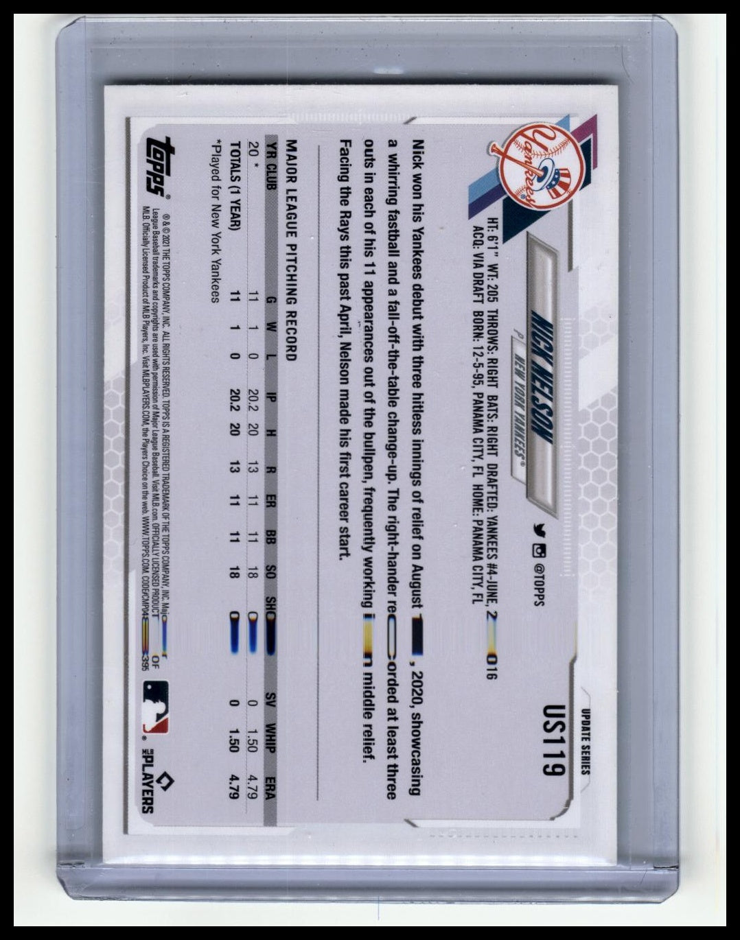 This is a nice example of a #US119 NICK NELSON Other important information about this card: RC In 2021 NICK NELSON played for the . Please check out our other listings for more great cards. Listed With Mascot.