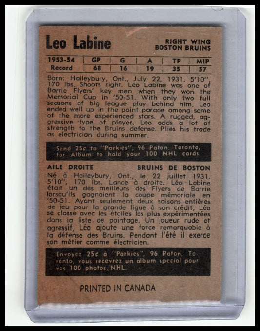 1954-55 Parkhurst #61 Leo Labine Lucky Premium Card